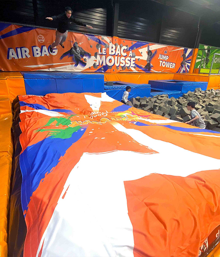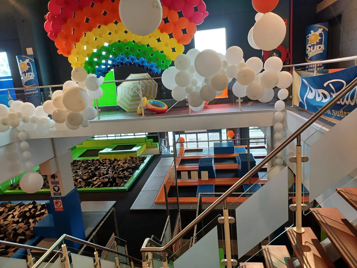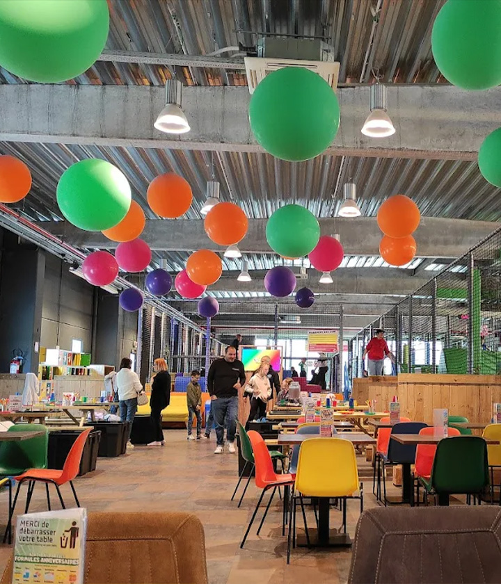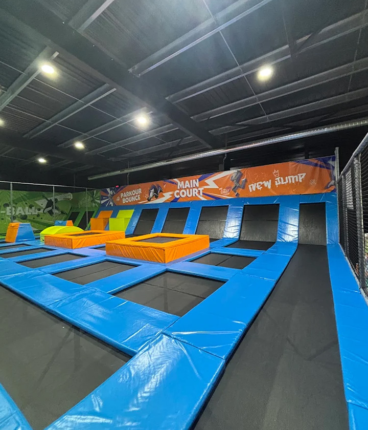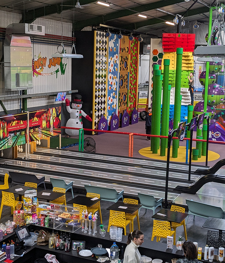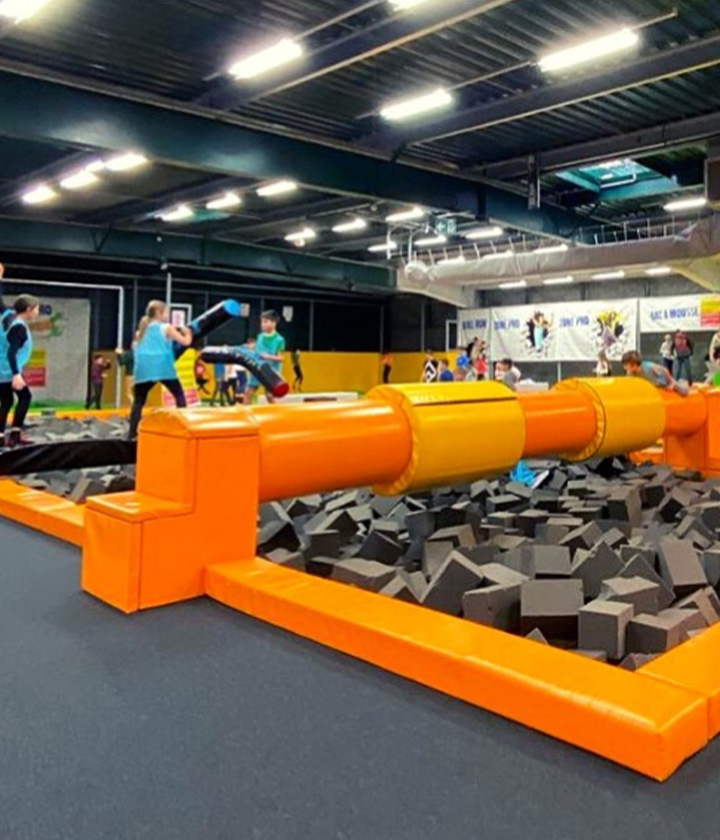 Parc de loisirs indoor, chauffé et climatisé, avec de nombreux espaces de trampolines.